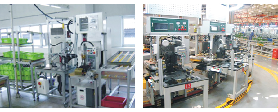 汽车空调、车镜装配与检测生产线采用拧紧,密封性测试,自动摇折摆动、镜面检测等设备,运用条码数据库管理。