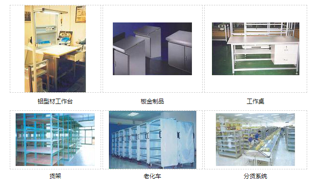 工作台、货架可用专用铝型材制作,也可用专用型钢、角钢、方钢管、圆钢管等制作。并可非标制作钢结构件。